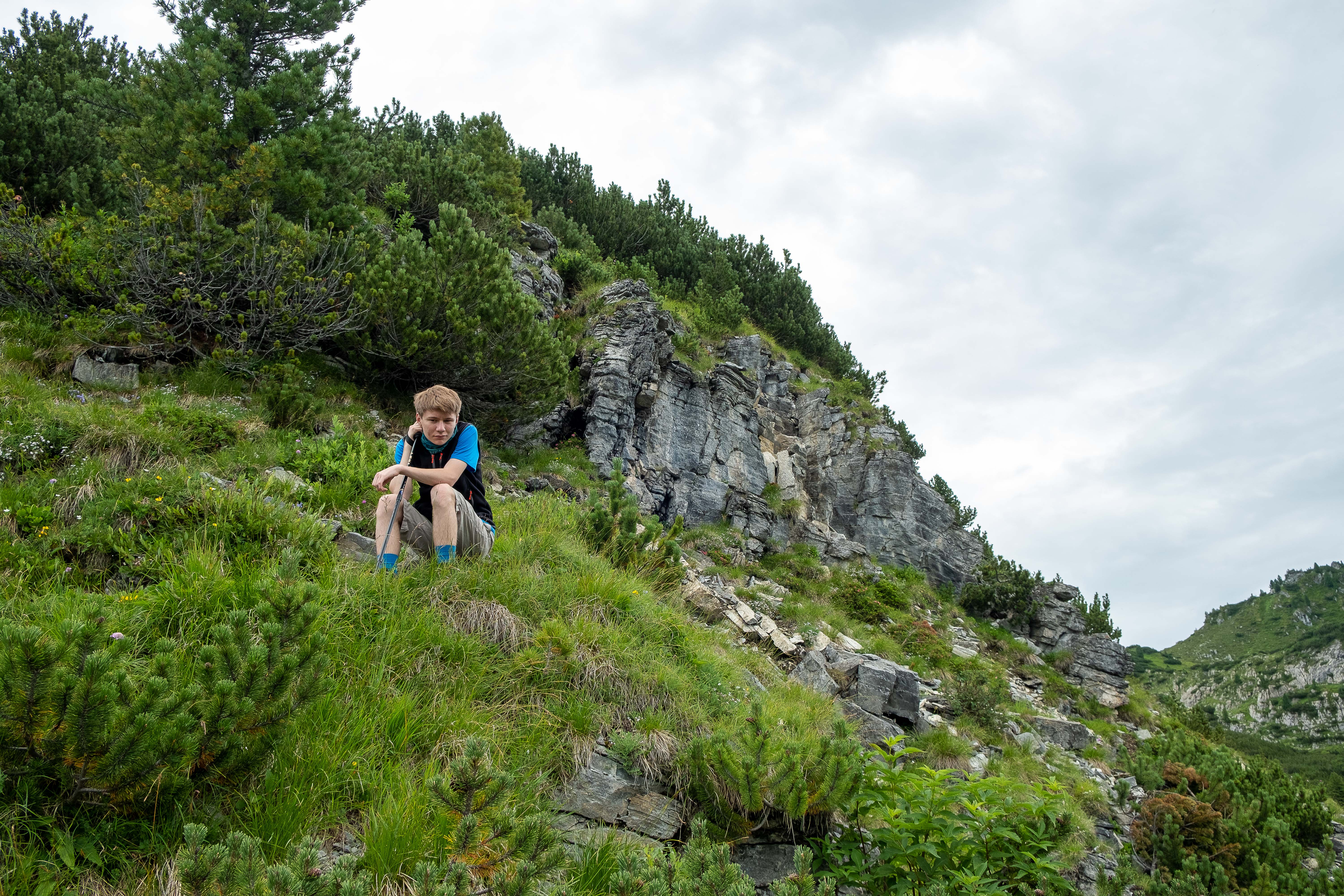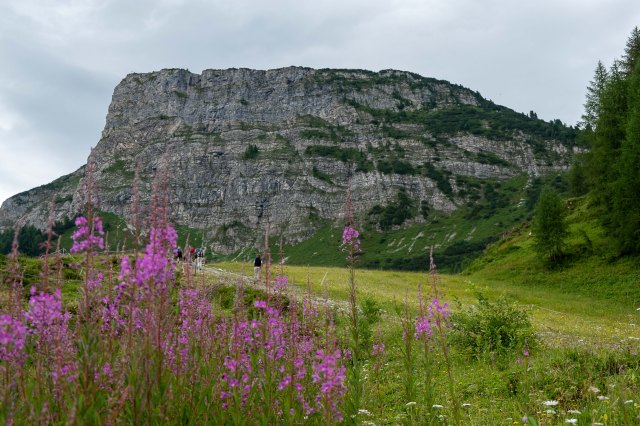 Der Anstieg ist recht steil und fordert schon nach einigen Minuten die erste Verschnaufpause! Wir sind doch etwas eingerostet. Aber das wird schon. Manche Leute gehen die Wand über den Klettersteig an! Wow! – das ist dann doch (noch?) nichts für uns. Wobei man uns versichert, dass es schlimmer aussieht als es ist und die Wand nicht ganz senkrecht hoch geht.
