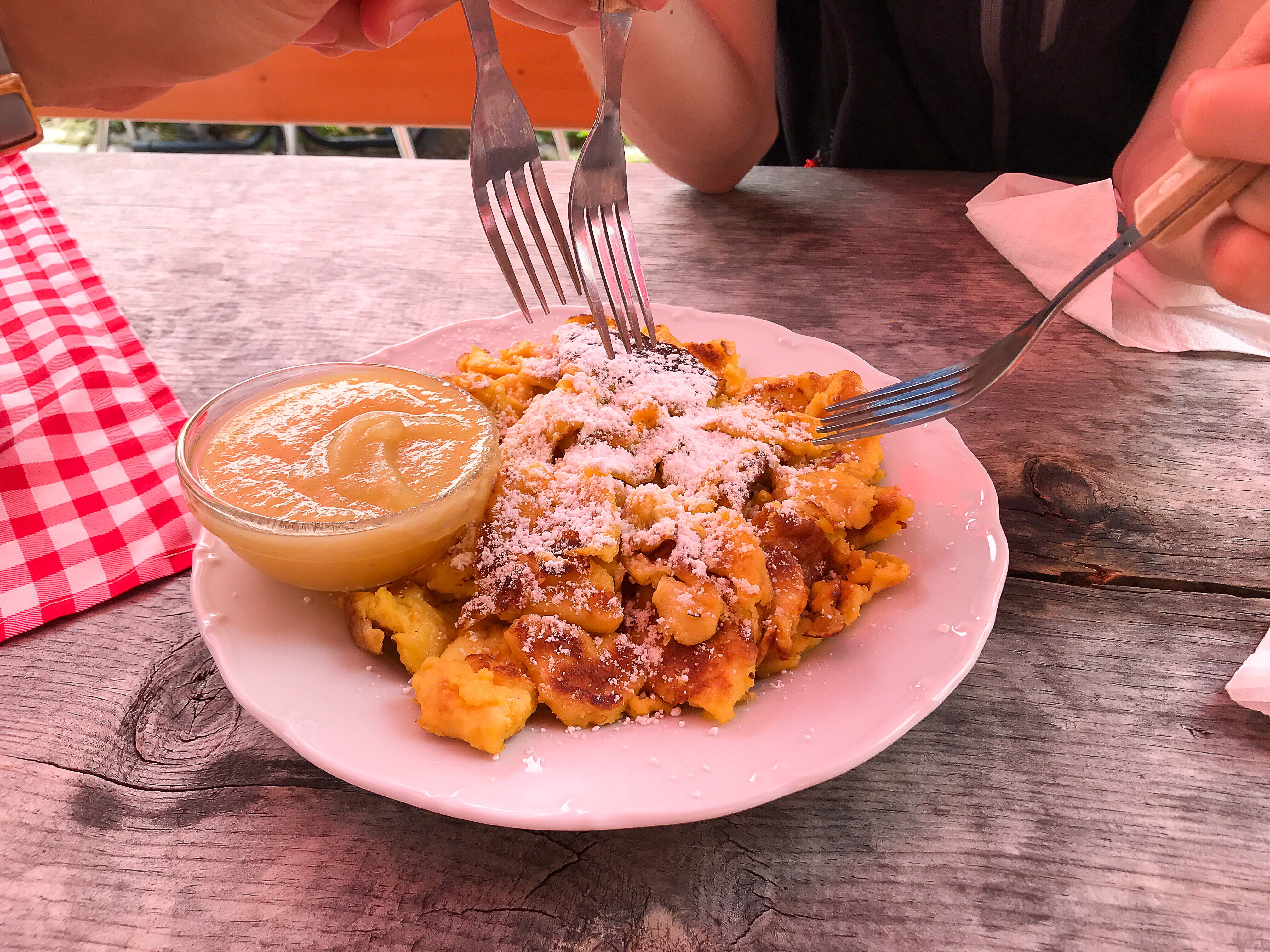 Und dann ist es endlich geschafft! Die Gerlosstein-Alm kommt in Sicht und 5 min später steht das kühle Radler vor uns auf dem Tisch! Nach Kaspressknödel-Suppe und Würstel mit Kartoffelsalat gönnen wir uns den ersten Kaiserschmarrn des Sommers! YES!!