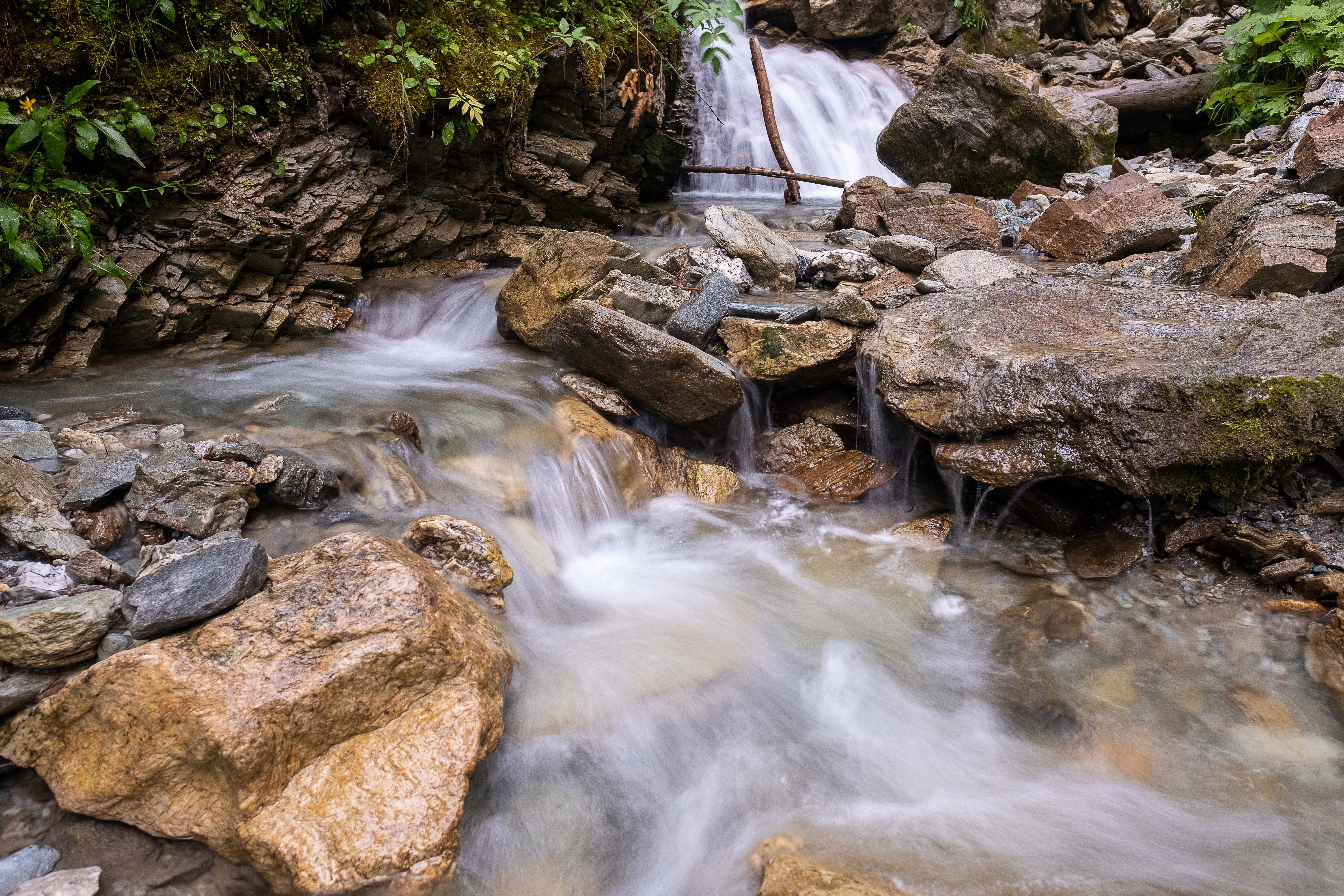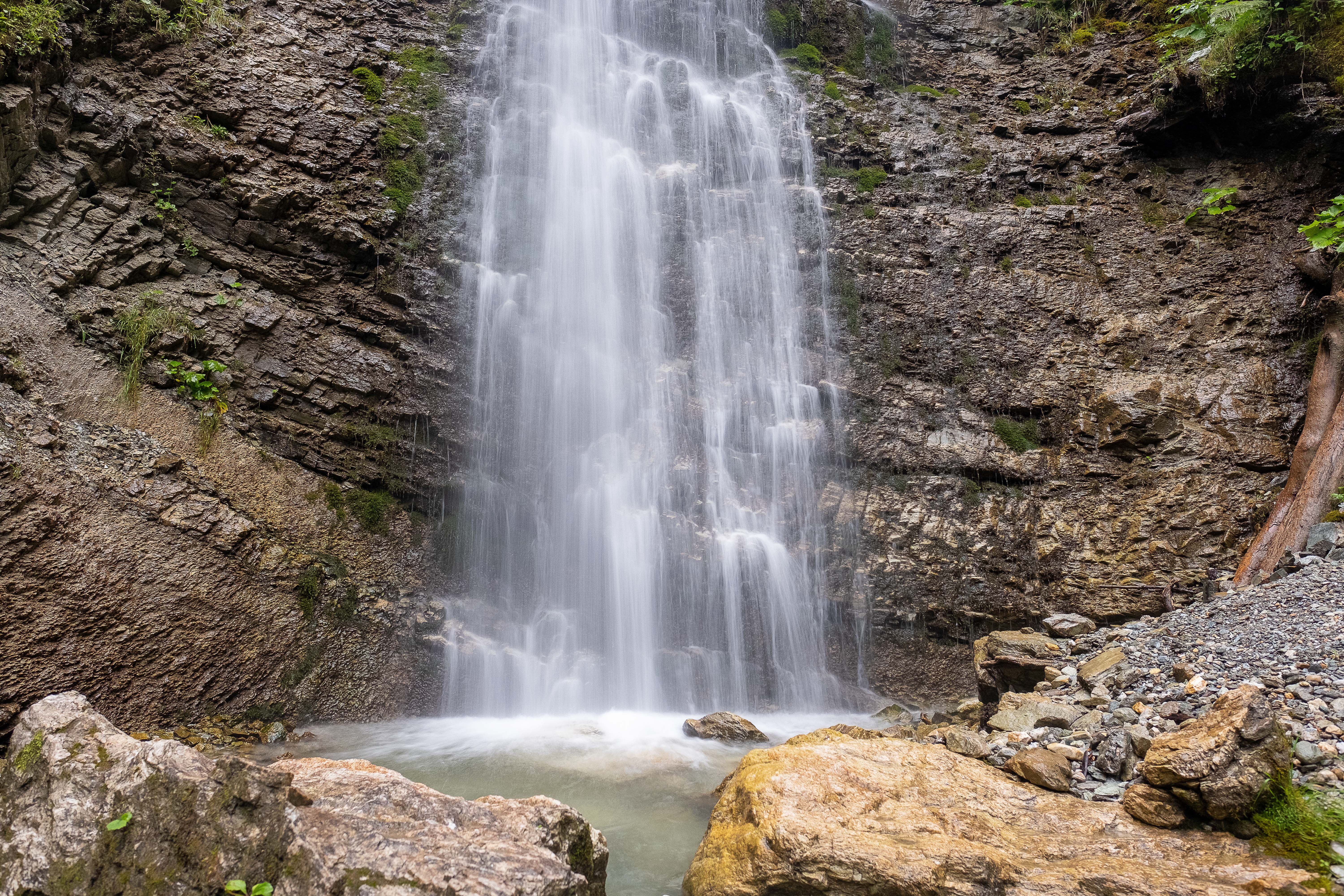 Kurz vor Gerlos geht’s dann hoch in den Wald – über Stock und Stein auf den Wasserfall-Trail. Das sollte doch nun interessanter werden – und wird es auch! Etwa 50 m über dem Gerlos-Bach geht’s wieder talauswärts. Kaum sind wir auf dem oberen Weg, reißt der Himmel auf und schwupp ist wieder Sommer!
