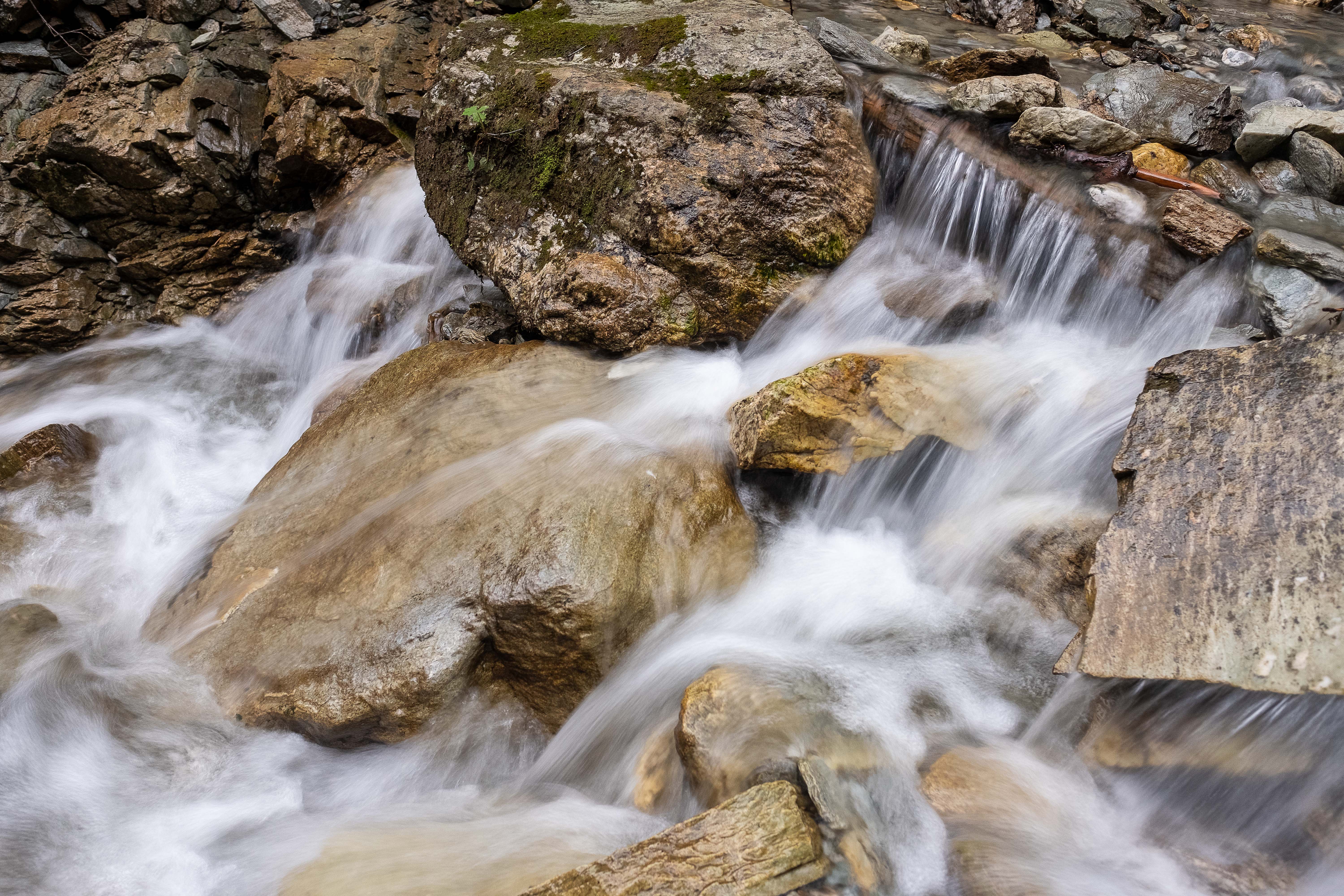 Es geht darum, die Bilder so lange zu belichten, dass sich bewegende Elemente – hier meist das Wasser – nicht eingefroren sondern fließend dargestellt werden. Das wiederum geht nur, wenn man der Kamera eine Sonnenbrille – Fachjargon: ND-Filter – aufsetzt, damit weniger Licht einfällt. Um dann ein ausreichend belichtetes Bild zu bekommen, muss man länger als normal belichten – Voilà!
