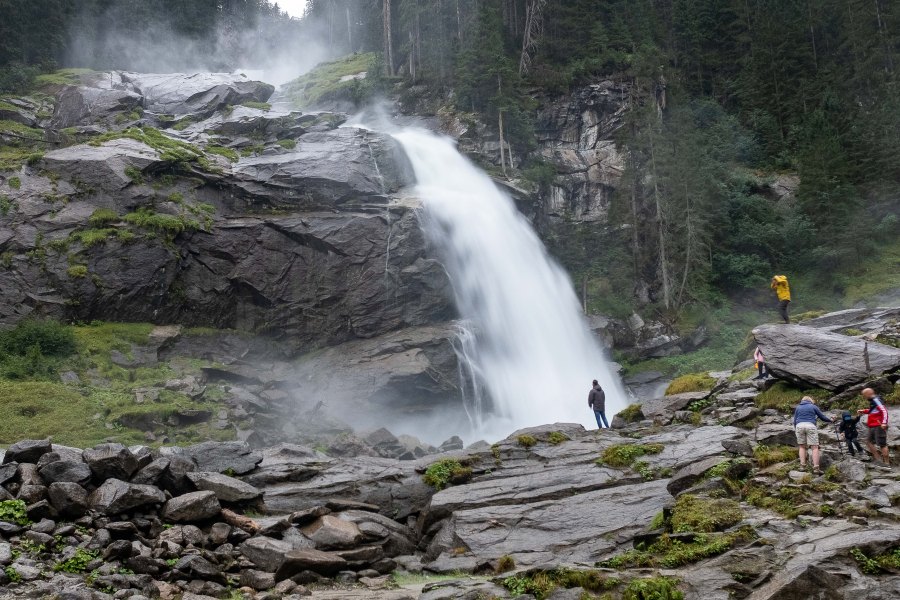 Das macht natürlich auch vor Hainzenberg keinen Halt und so überlegen wir fieberhaft, was es noch zu erkunden gibt, wenn wir nicht auf den Berg gehen können. Die Idee ist so simpel wie einleuchtend: wenn schon Wasser, dann aber richtig! 45 min entfernt befinden sich die Krimmler Wasserfälle. Diese sind recht berühmt, denn sie sind mit 380 m Höhe die höchsten Europas und die fünft-höchsten weltweit!