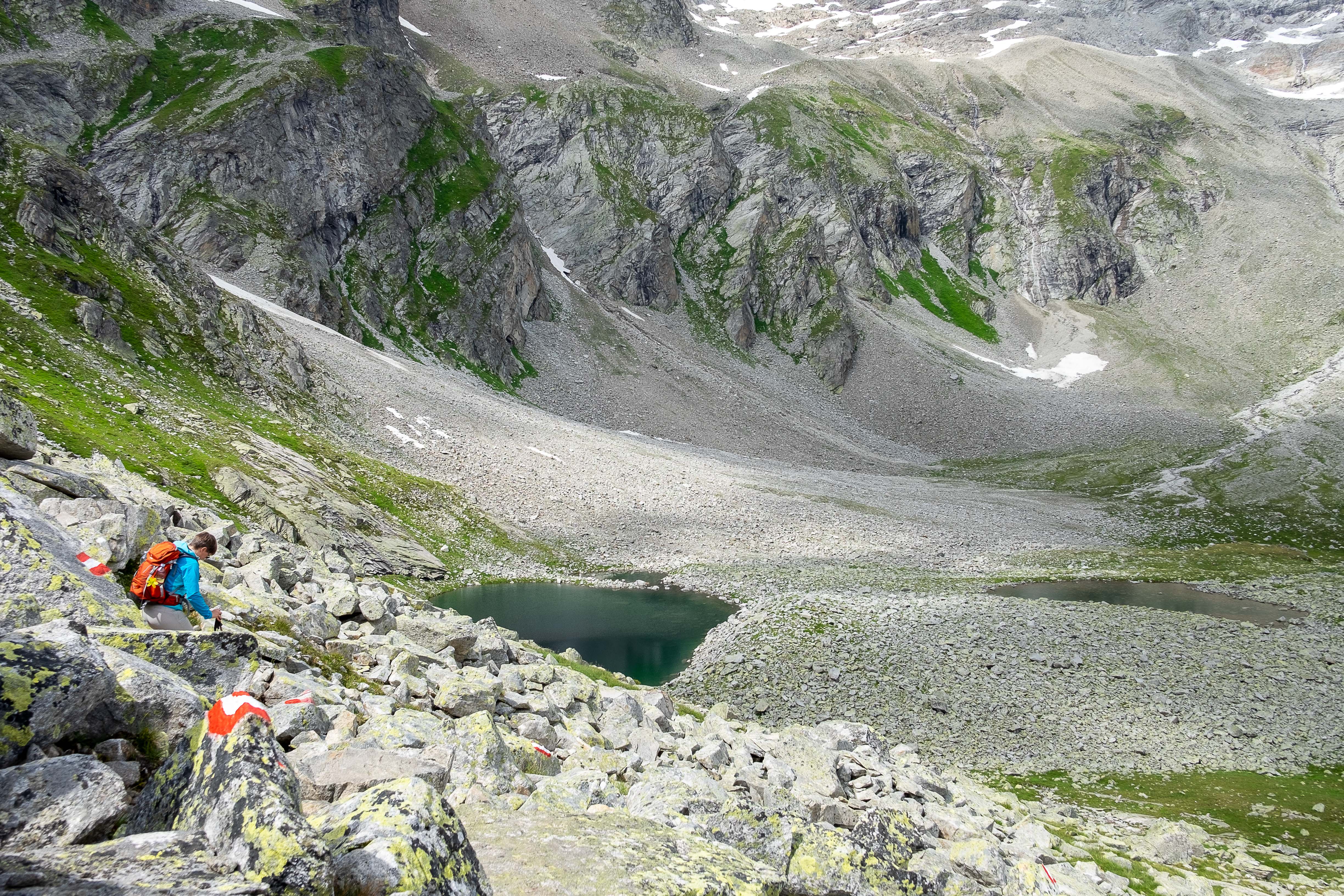 Wir steigen in ein Hochtal hinab, ins Unterschrammachkar.