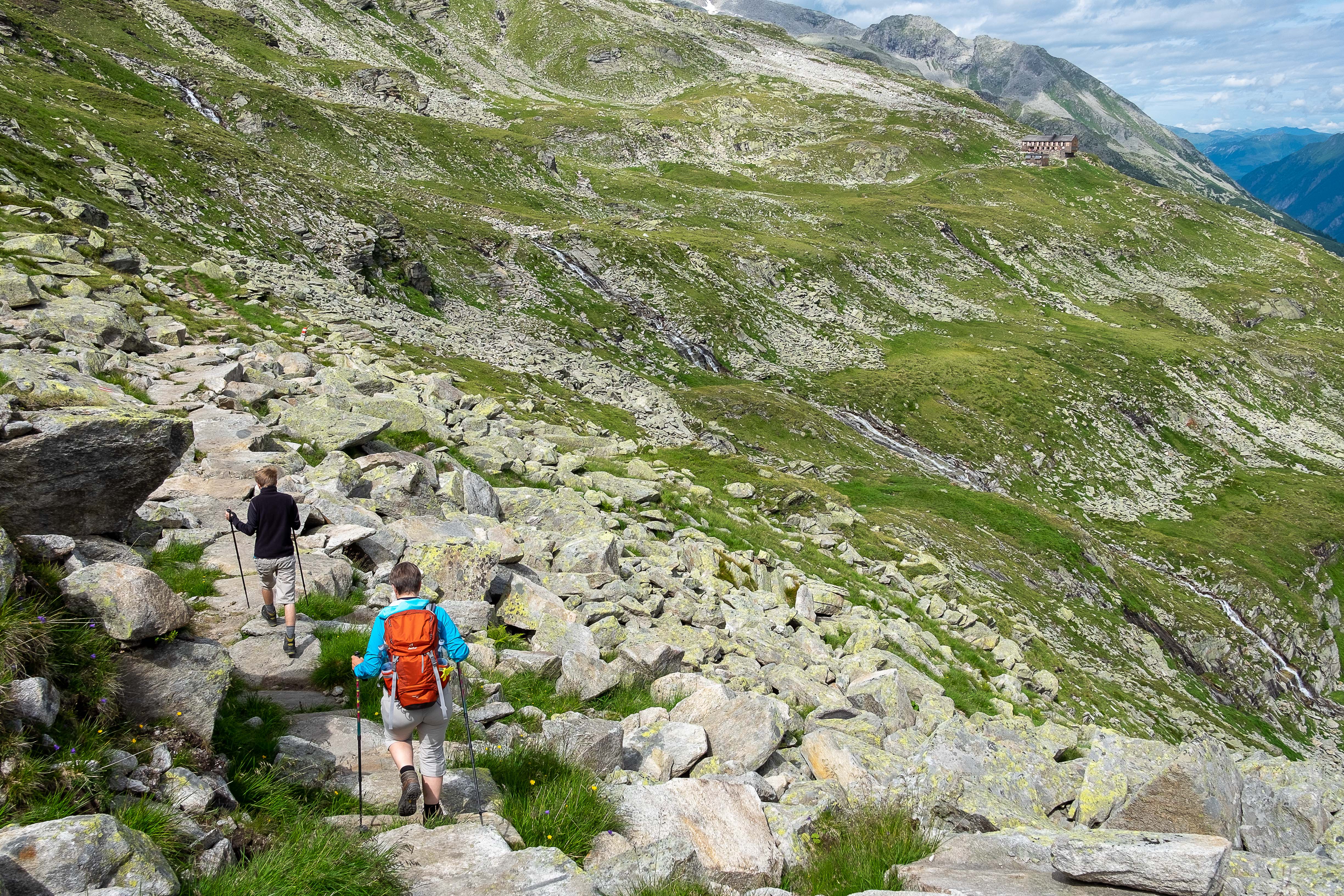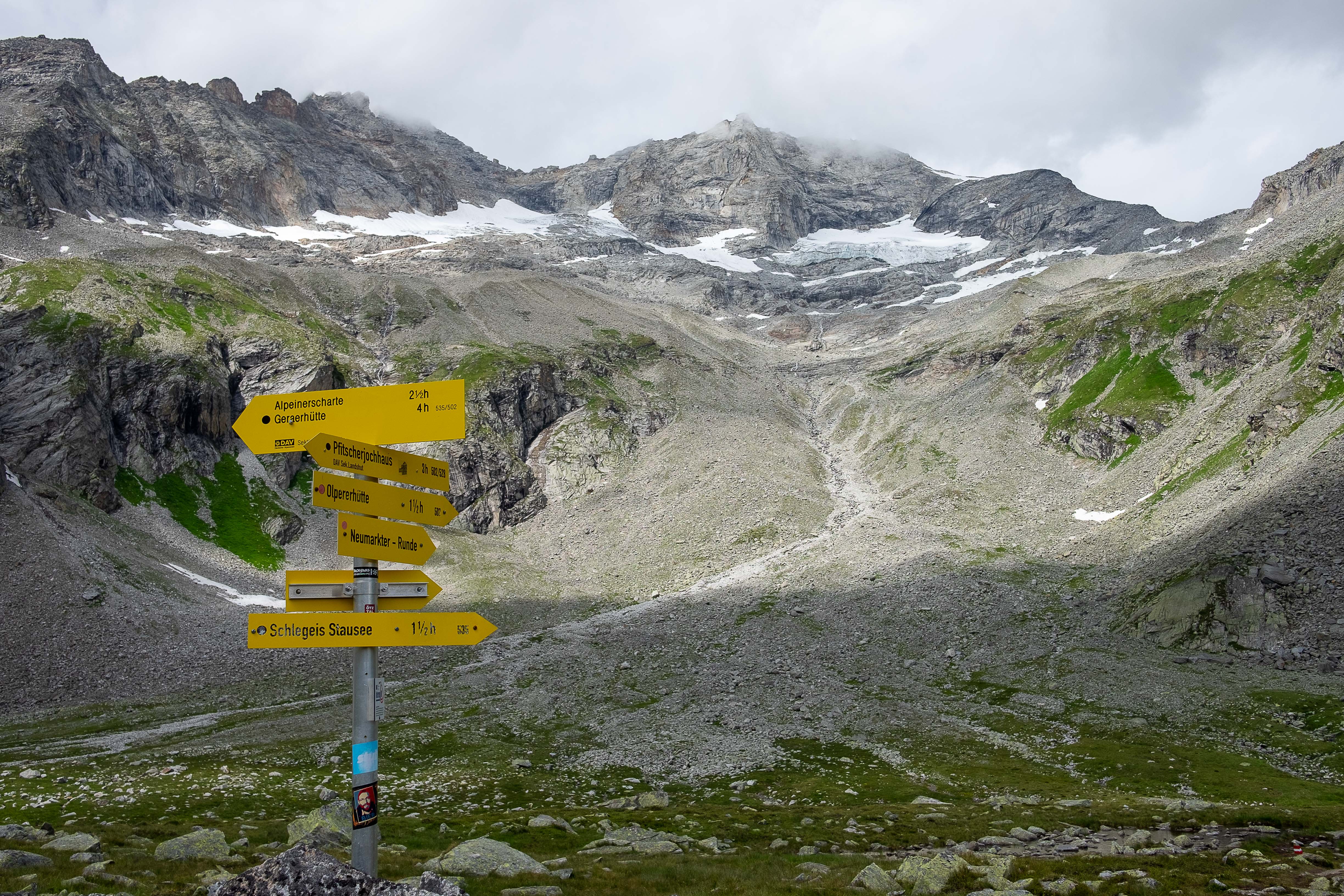 Das Ziel der ersten Etappe ist das Pfitscherjochhaus. Das Haus hat eine Besonderheit: es liegt bereits in Südtirol und damit in Italien. Somit lautet unser Etappenziel: ein Cappuccino um 11:00 Uhr in Italien! Das ist ambitioniert, denn bis zum Pfitscherjochhaus braucht man vom Parkplatz des Schlegeisspeichersees rund 2 Stunden.
